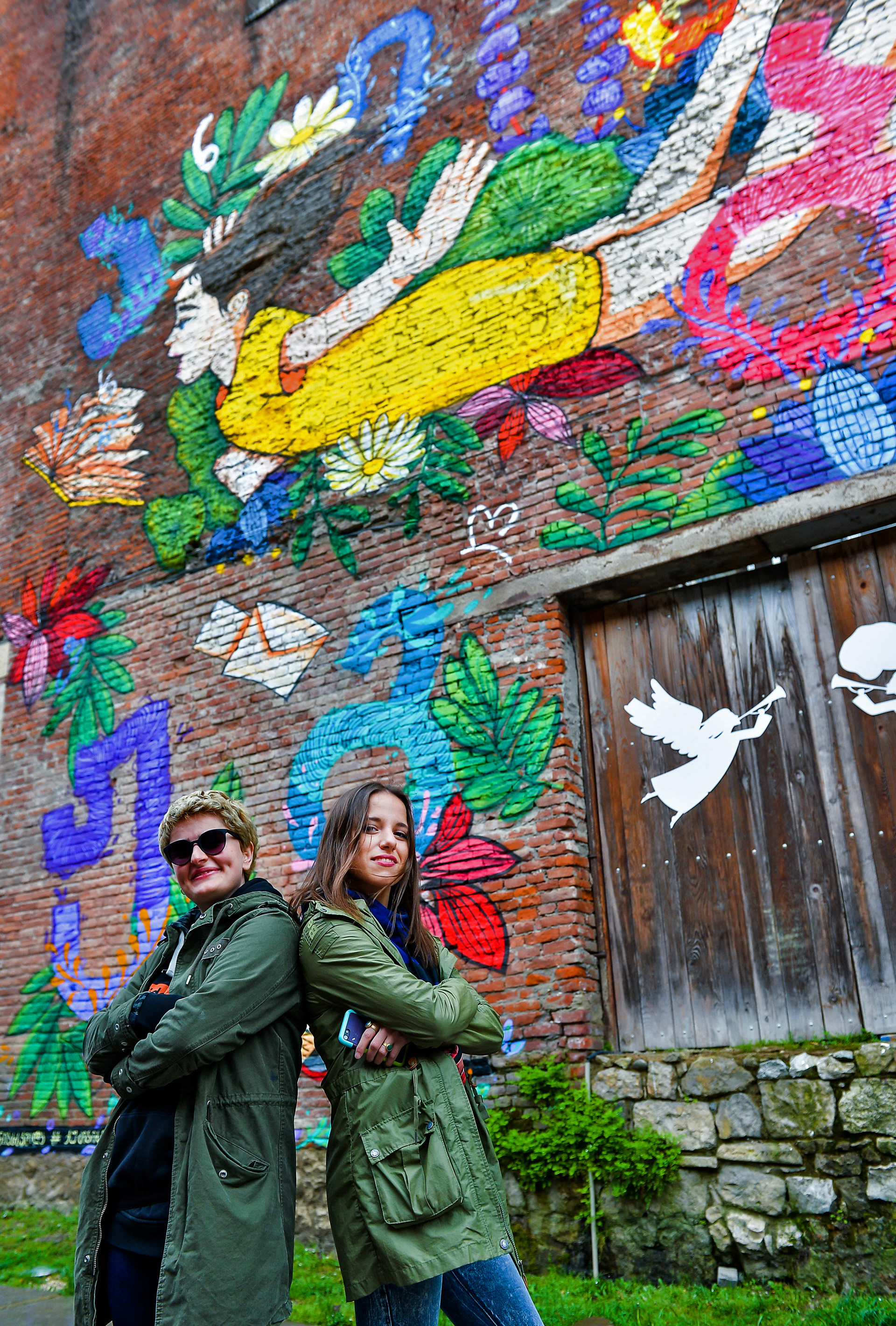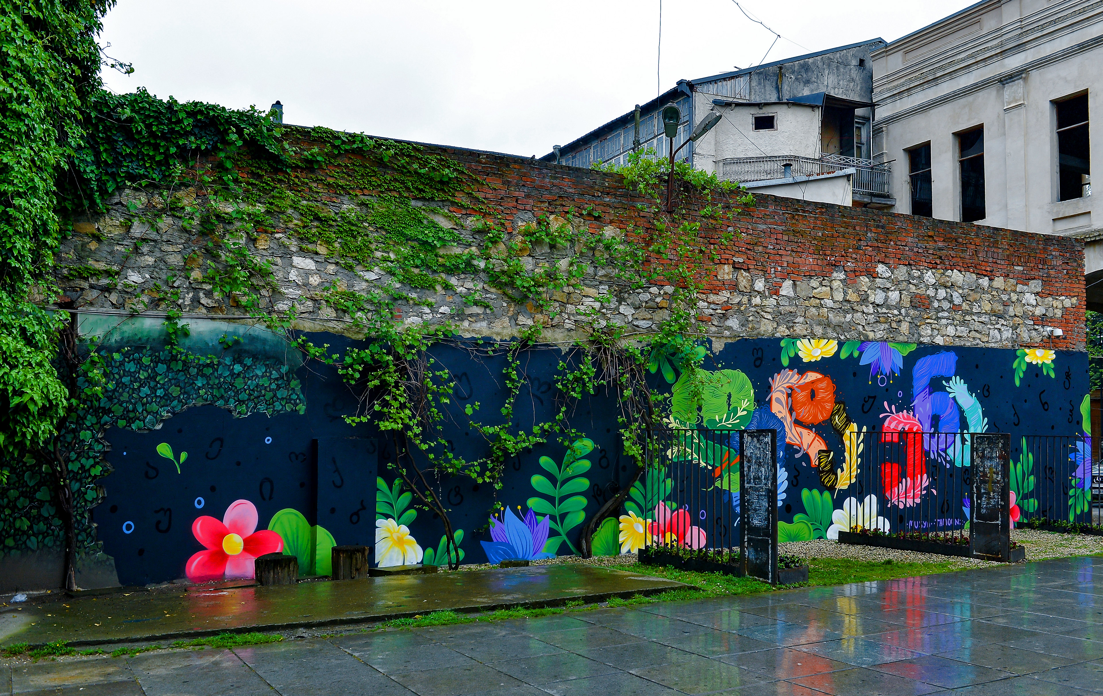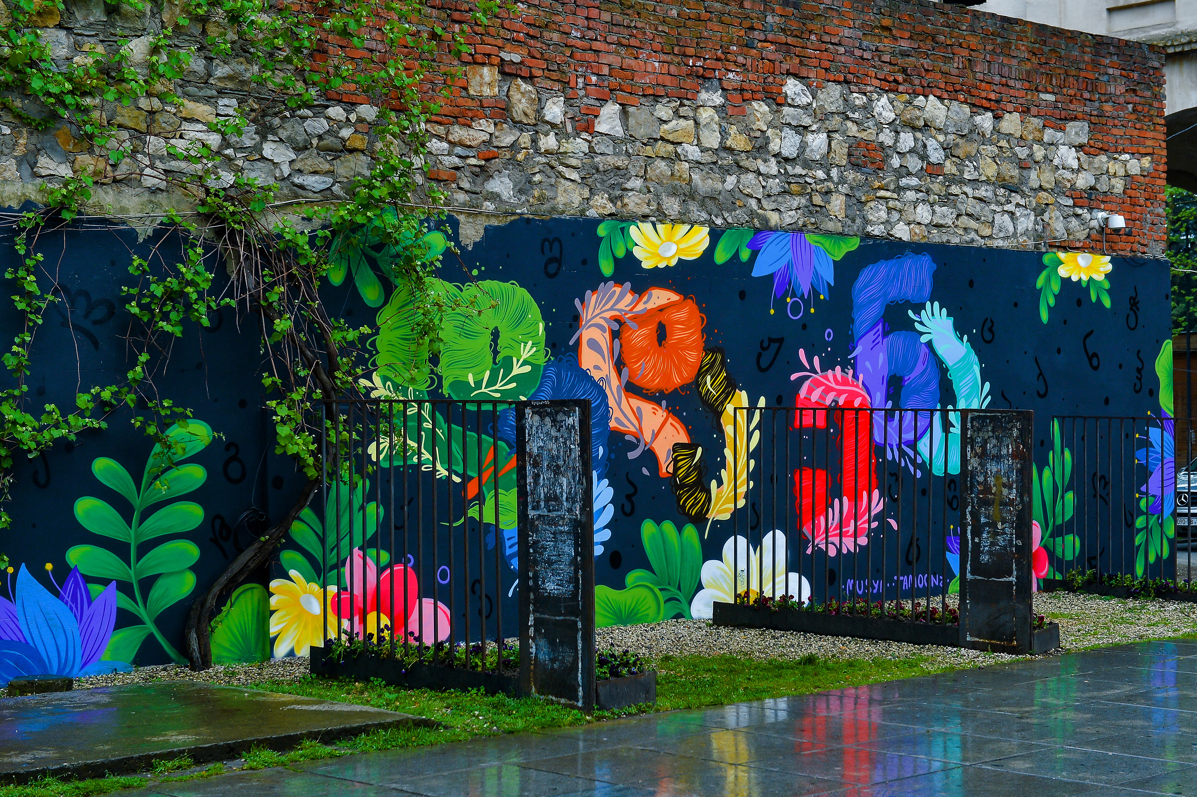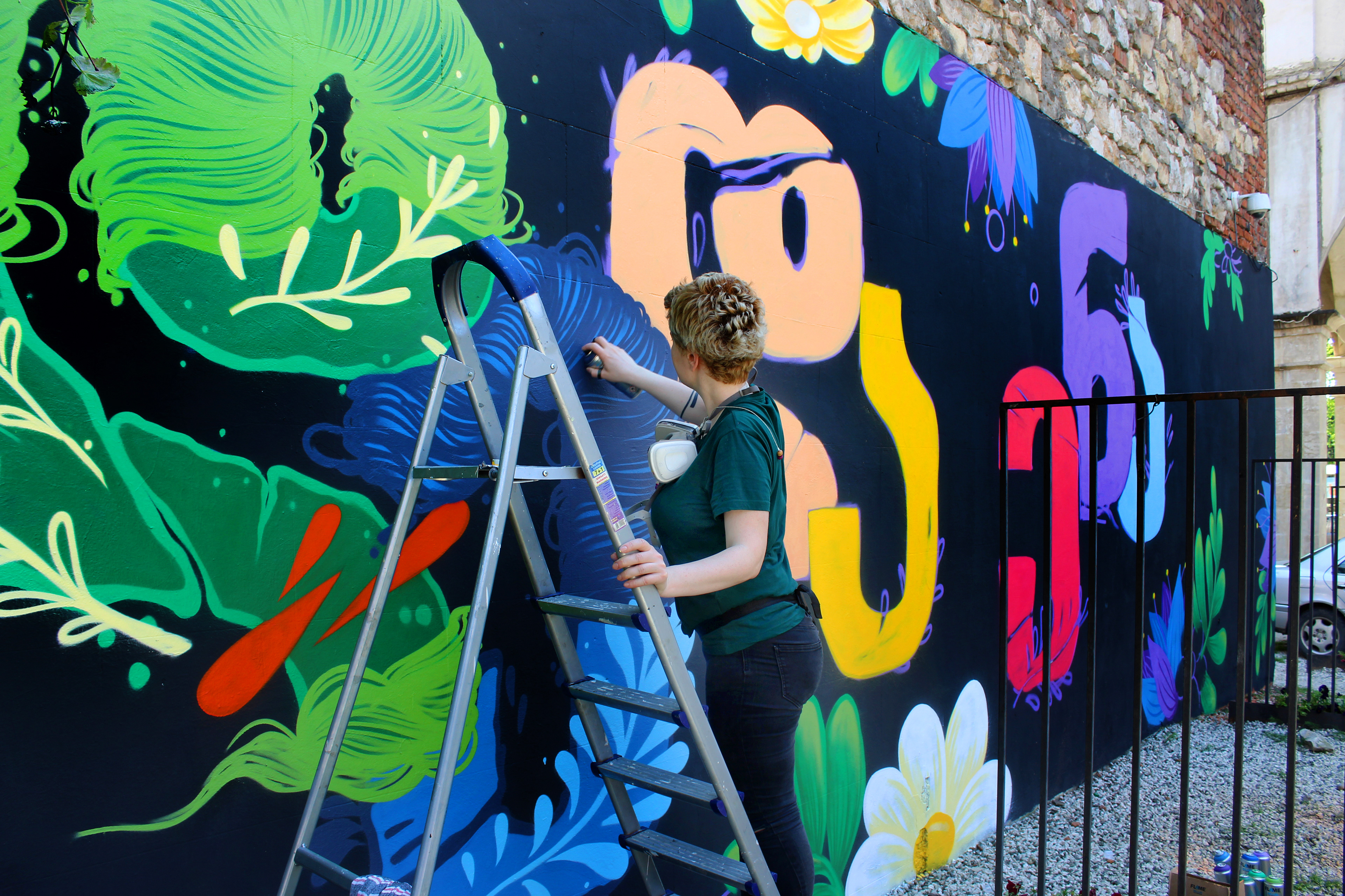 New Wall paintings for Kutaisi April 14 - Georgia celebrates Mother Language Day. My Collaboration with Georgian street artist Tam Oonz and with her Georgian alphabets.