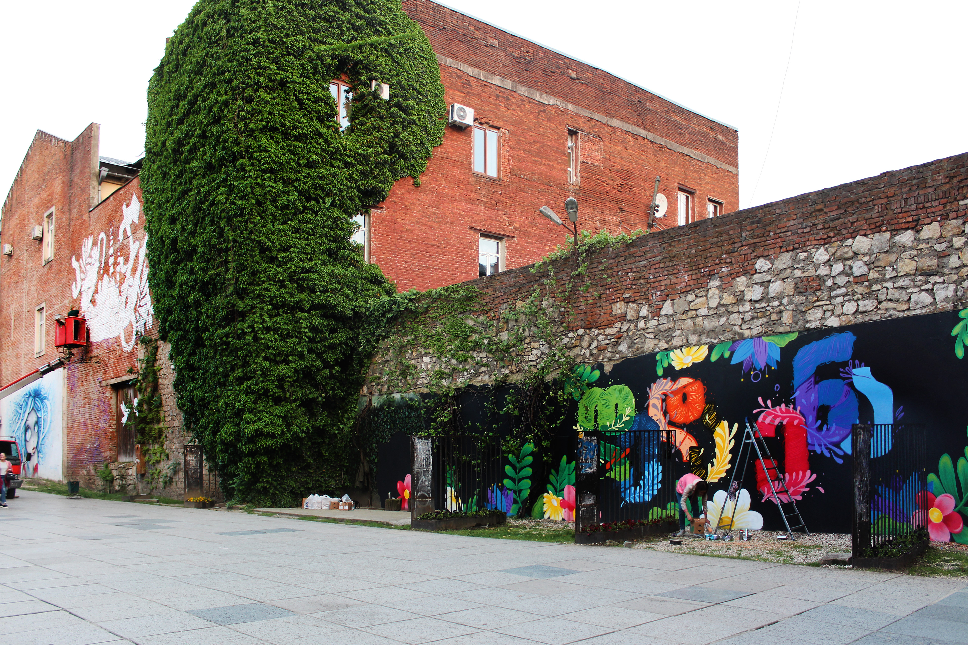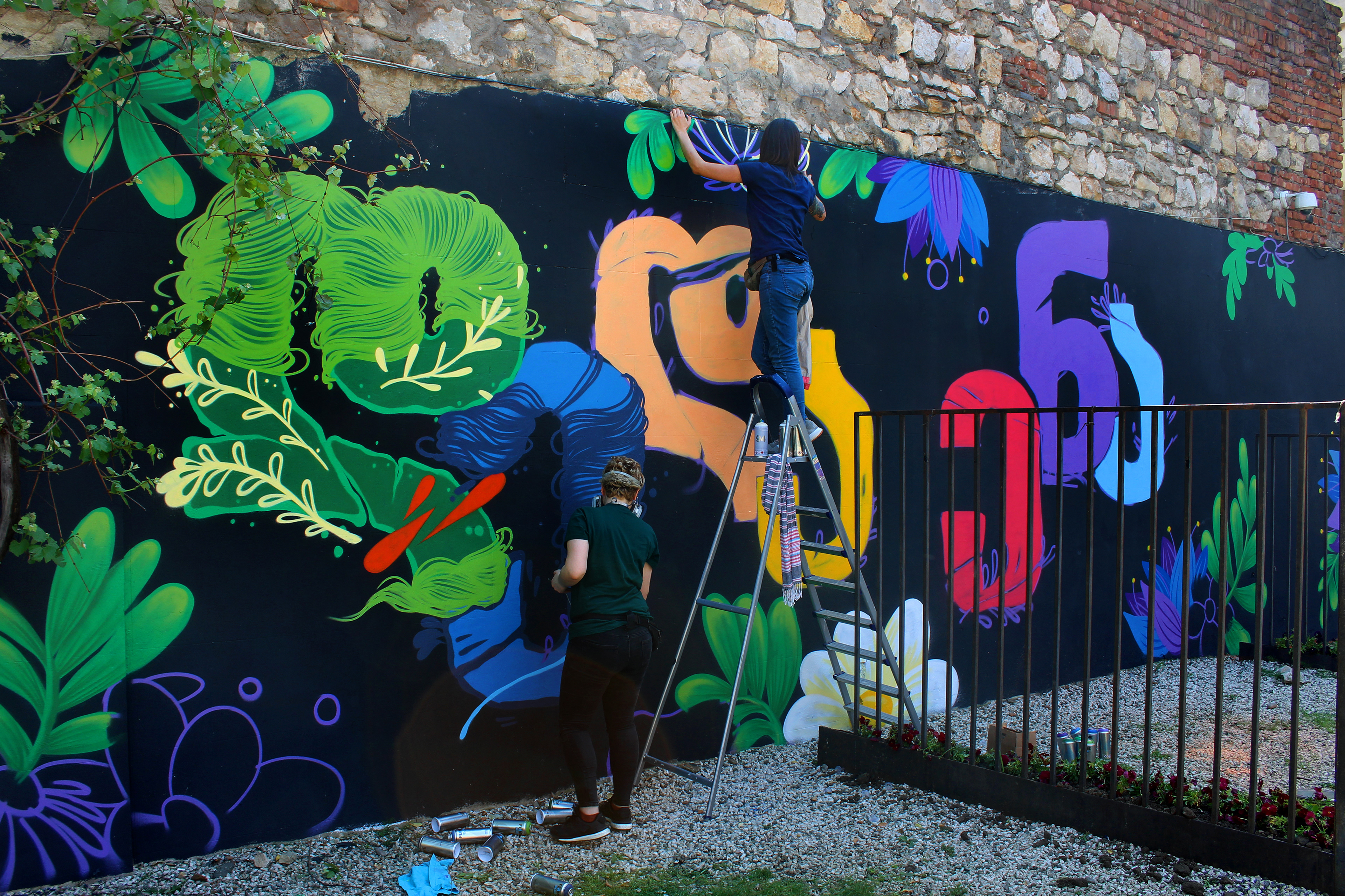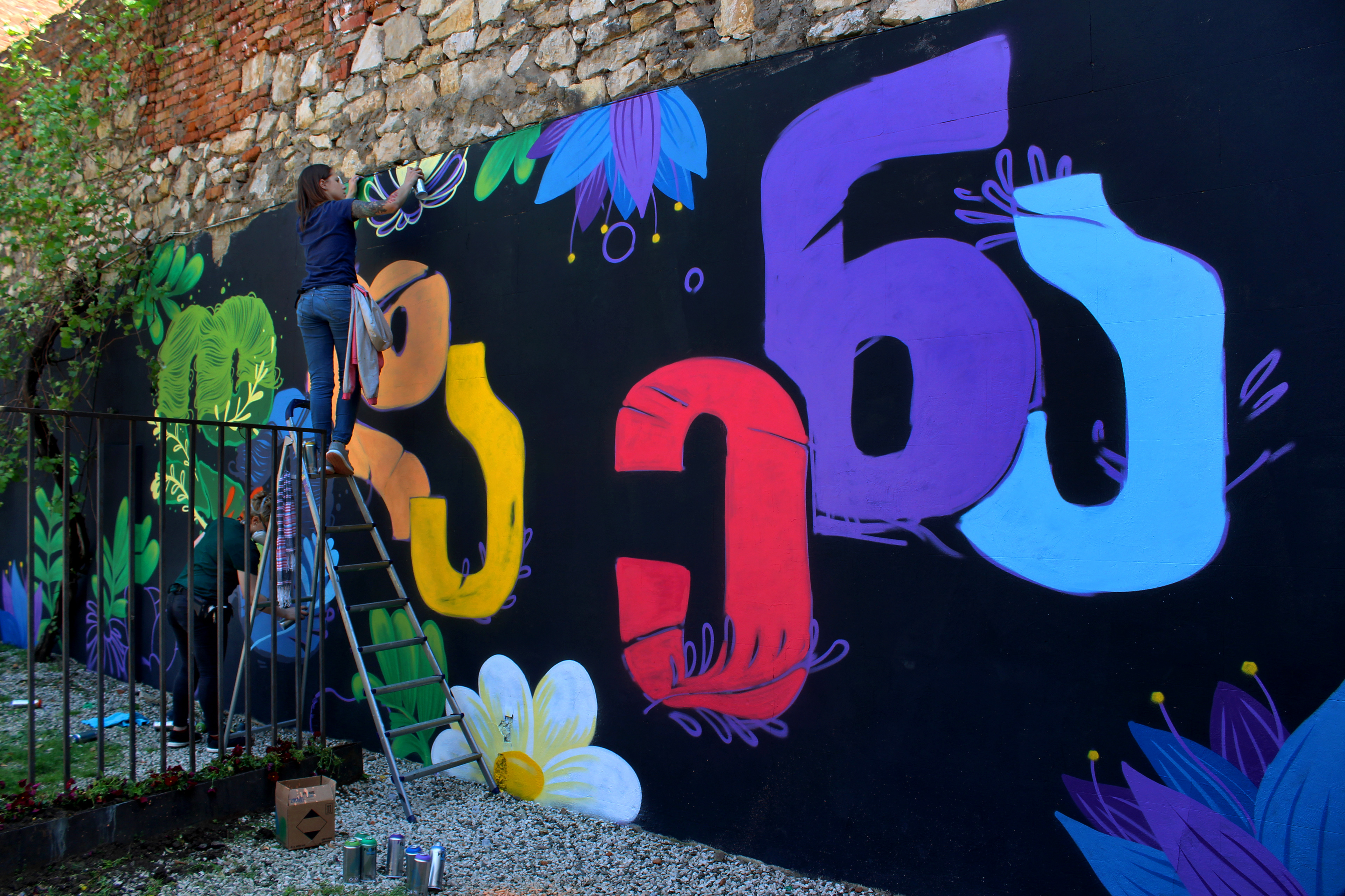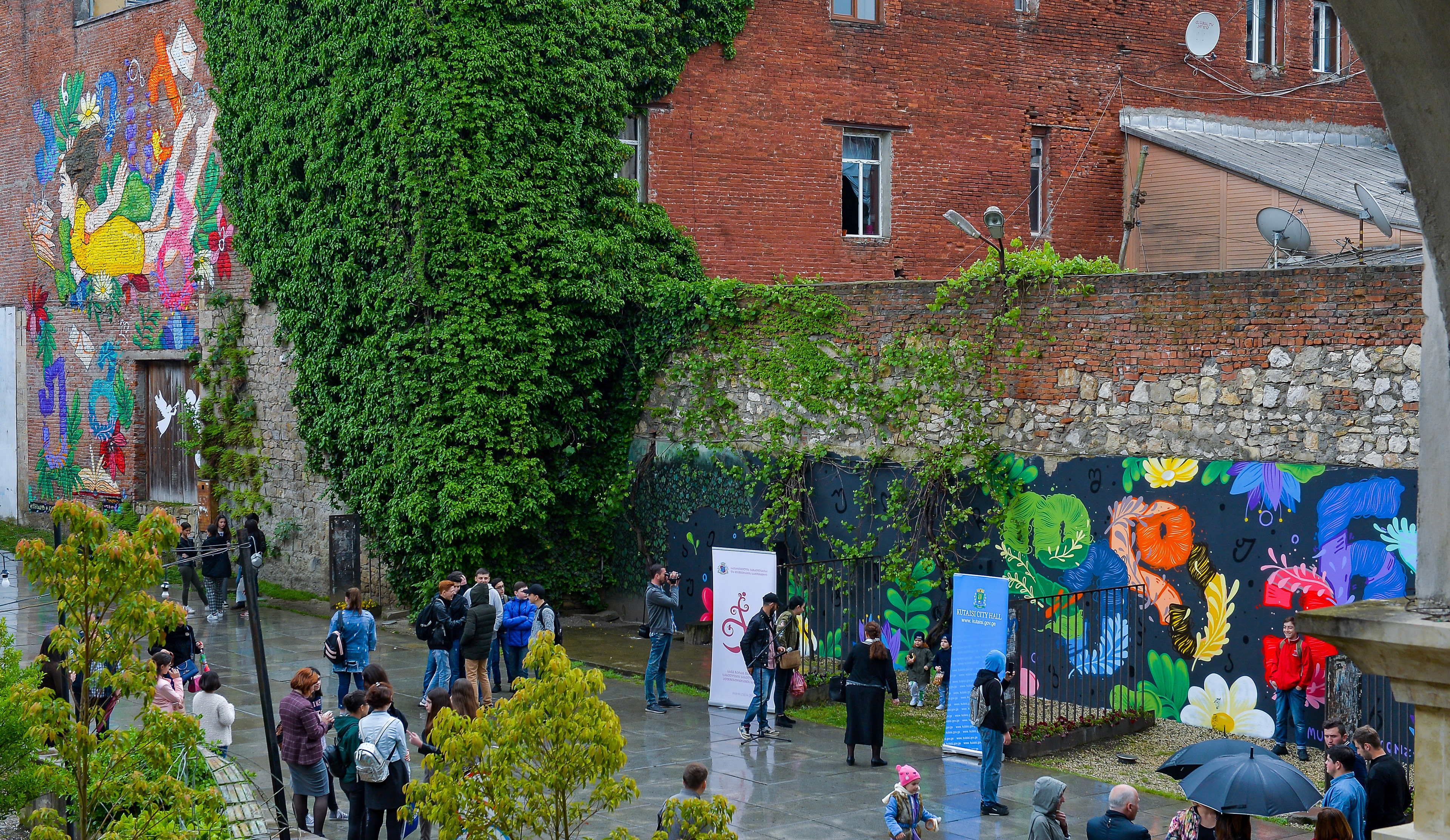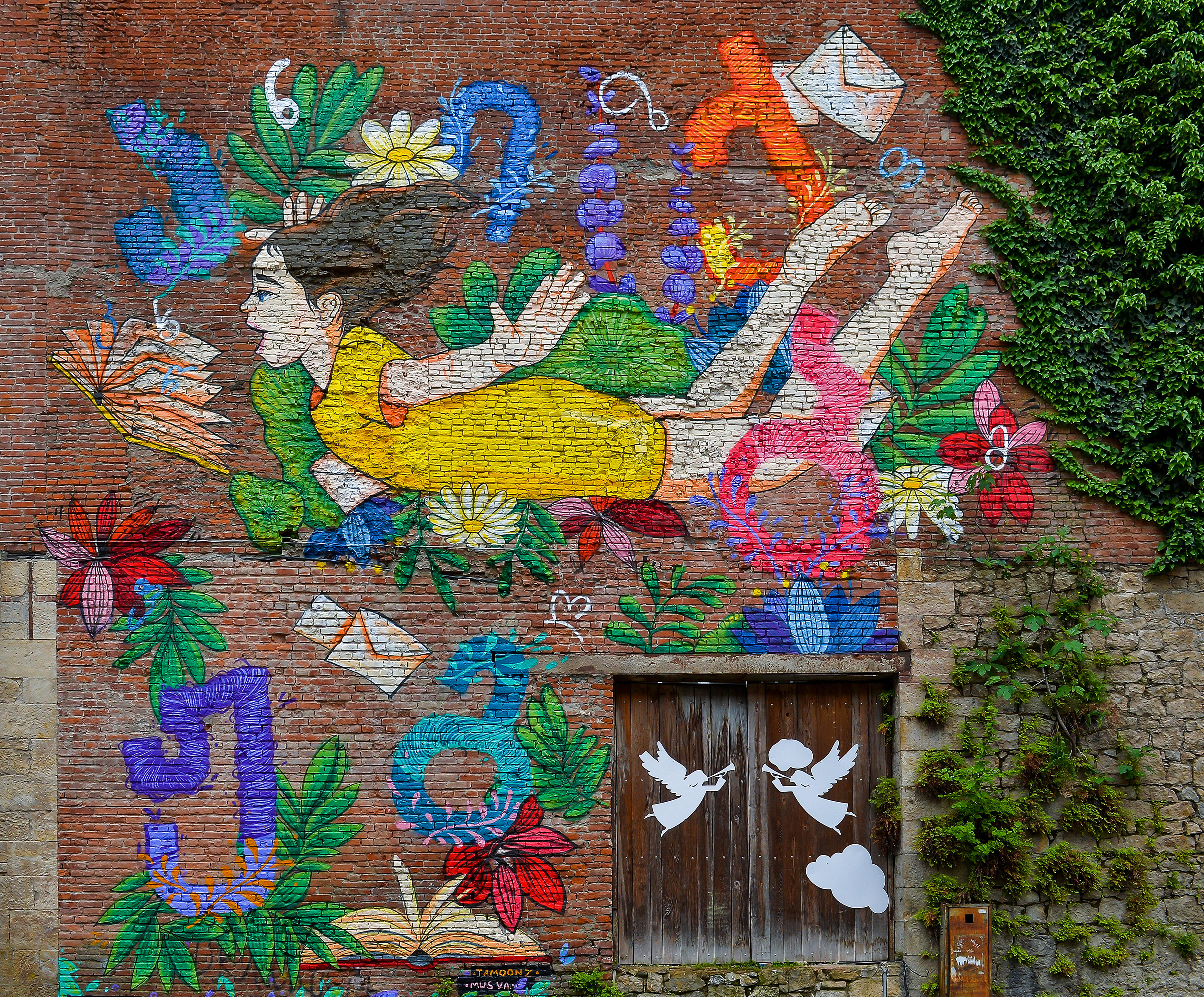 New Wall paintings for Kutaisi April 14 - Georgia celebrates Mother Language Day. My Collaboration with Georgian street artist Tam Oonz and with her Georgian alphabets.